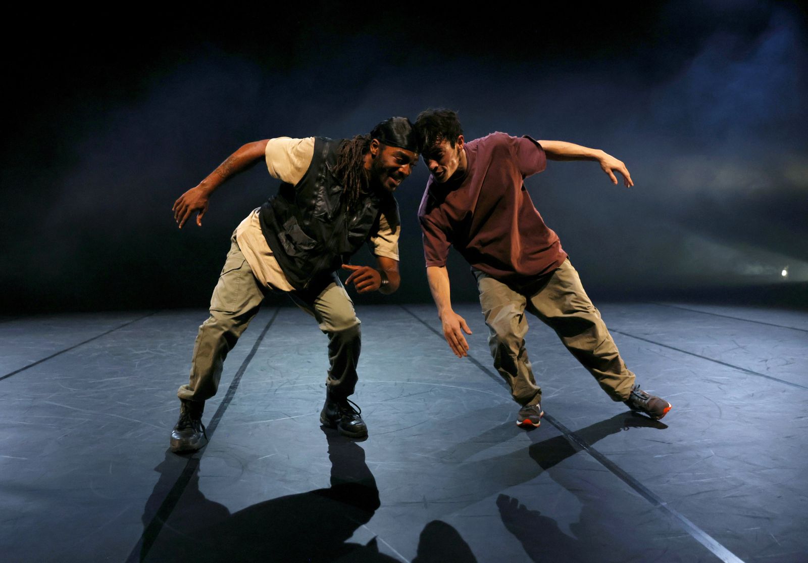 Heracles on his head brings us back to the origins of hip-hop culture. On a U.S. rap playlist that tells the sometimes-brutal reality of the Afro-American youth, from New-York City to South Central, Atlanta, Dallas, Houston, or Philadelphia, four dancers, two B-Boys and two female hip-hop dancers, explore the principles of competition, hierarchy, and meritocracy. From Gil Scott Heron, KRS-One and Public Enemy to gangsta rap and contemporary conscious rap, the soundtrack immerses us into a vision of the system described from where one has to thrive to survive. Using embodied metaphors and symbols, the dancers, alone or as a group, compose a narrative about the strategic games we all play, but whose outcomes we undergo differently depending on the constraints that are imposed on us and on those we accept.