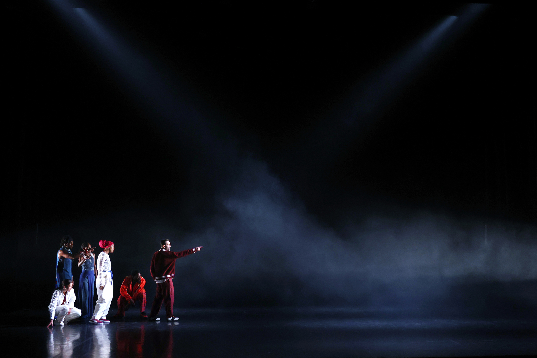 Witch Hunting explores the human being’s desire for empire and its capacity for self-sacrifice. On the bare stage, six dancers, women and men of different dance styles – krumping, hip-hop and African urban and traditional dances – use the virtuosity of their dance to define their zone of influence and to affect the other dancers’ movements. Individuals find fractions of common vocabulary and converge physically, consenting to uniting against those who oppose the fabricated consensus. In conditions where one can only win by putting others aside, the dynamics of scapegoating play in a cyclical manner, to the profit or detriment of each. The peculiarities of individuals submit to the authority of the united mass and fade away to tend towards conformity, whose continuity is ceaselessly challenged by dissidence.