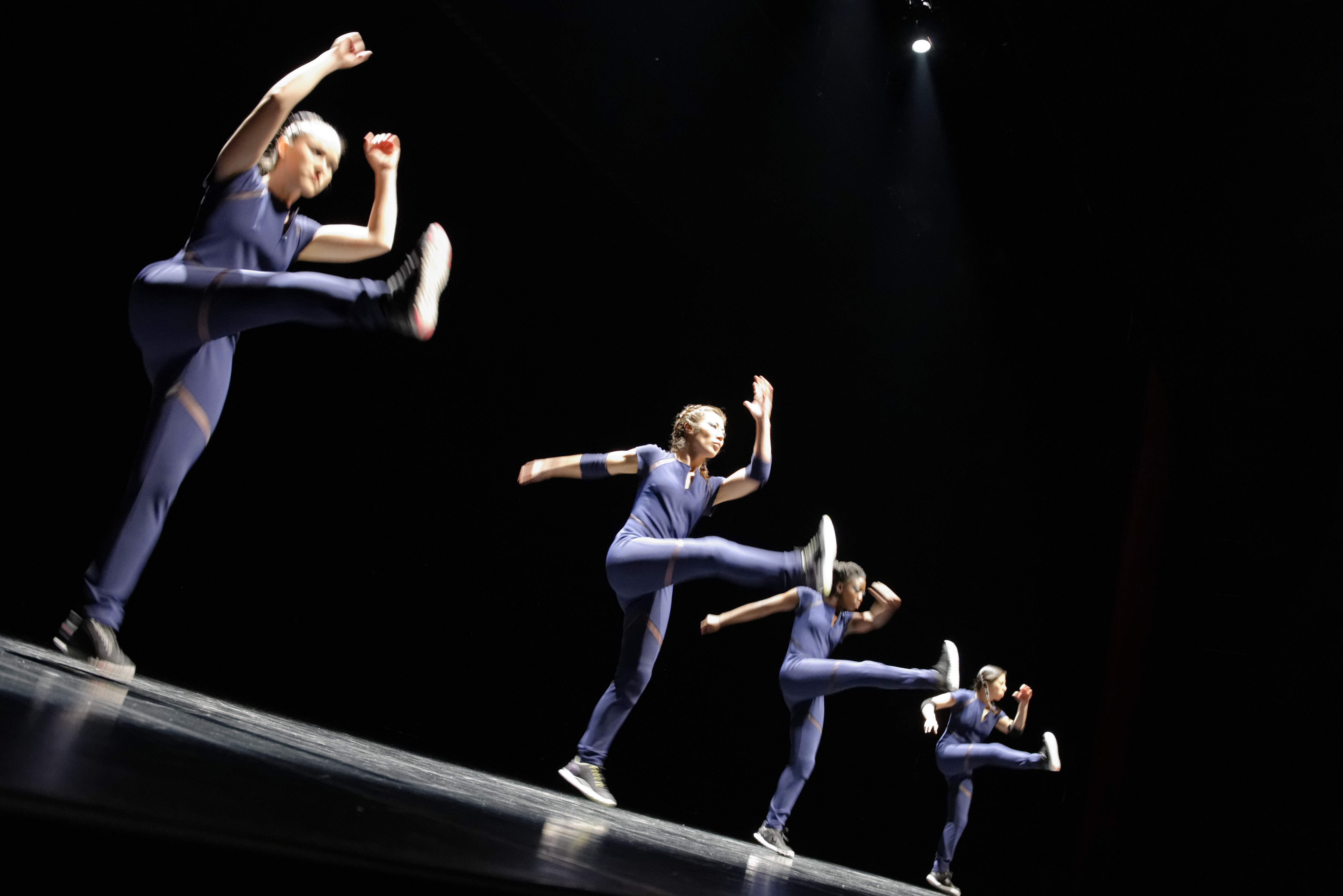 Amongst her shows currently on tour, the trio Underdogs, touring since 2021, explores the etymology of popping, the political symbols and the social markers of the urban collective unconscious. Quartet Heracles on his head, touring since 2022, is a danced investigation of the principles of competition, hierarchy, and meritocracy that puts into perspective the adoption of breakdancing as an Olympic discipline. The piece for six dancers Matière(s) première(s), touring since 2023, highlights the mechanisms fostering resource extractivism through an initiatory trip into the universe of African urban and traditional dances. Behind the Line, her 2024 show produced by Le Carreau du Temple and co-authored with Malik Djoudi and Joris Avodo, stages four young Beninese dancers from association Irilojù, les “Enfants des Collines”, alongside two krumpers and two African urban and traditional dancers, on the theme of limits and frontiers crossing in light of Olympic values.