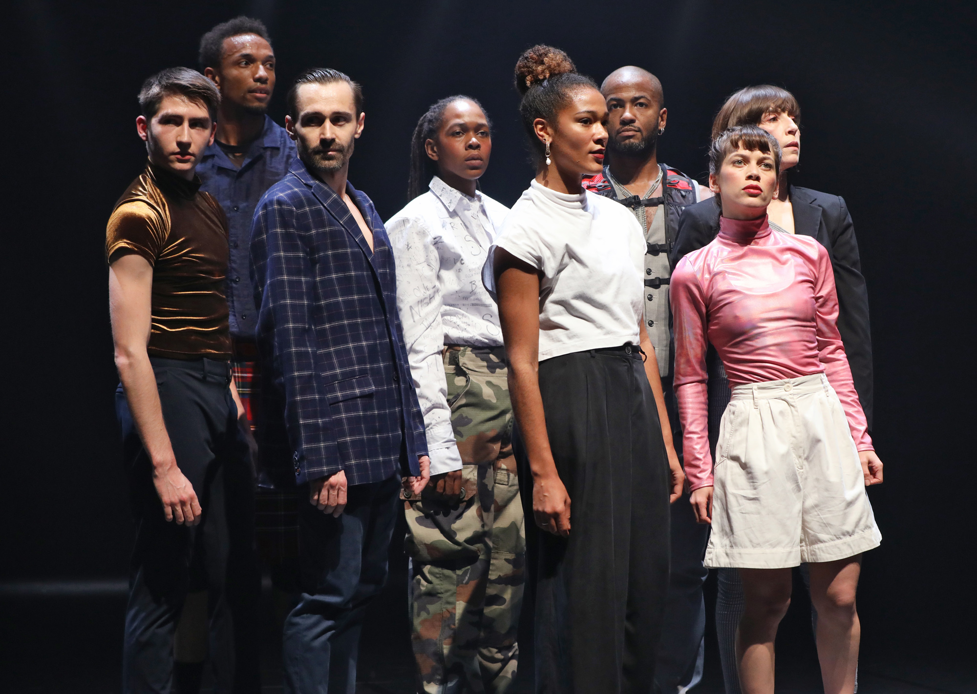 À mon bel amour questions our perception of the individual, the couple and the collective by exploring different conceits about identity and beauty. Eight dancers, four men and four women, toy nonchalantly with the poses they strike with their bodies and the symbolism of their dances to assert their identity and challenge the limits of our gaze. The gesture and purpose of the eight virtuoso dancers reflect different cultural references, different archetypes, different perceptions of the self and of others. From classical ballet to voguing, krumping, popping, contemporary dance and waacking, their dance cultures and on-stage movements allude to the fashion show, or photographic or cinematographic representation, the clubbing scene, the tradition of theatre, or to society’s trappings, thereby presenting manifold ways of approaching the audience. In À mon bel amour, everything is symbolic, not just dance movements and posture, but also appearances and clothing. Daring to show off, be flirtatious, assertive, dominating, to cock a snoop, to show love, they transcend themselves in order to exist. Like parading animals, the eight dancers advance towards us tirelessly, alone, in pairs, or collectively. In a world where we struggle to agree on values, can we arrive at a consensus about the concept of beauty? À mon bel amour is a manifesto about diversity, that takes into account individual identities in a respectful manner.