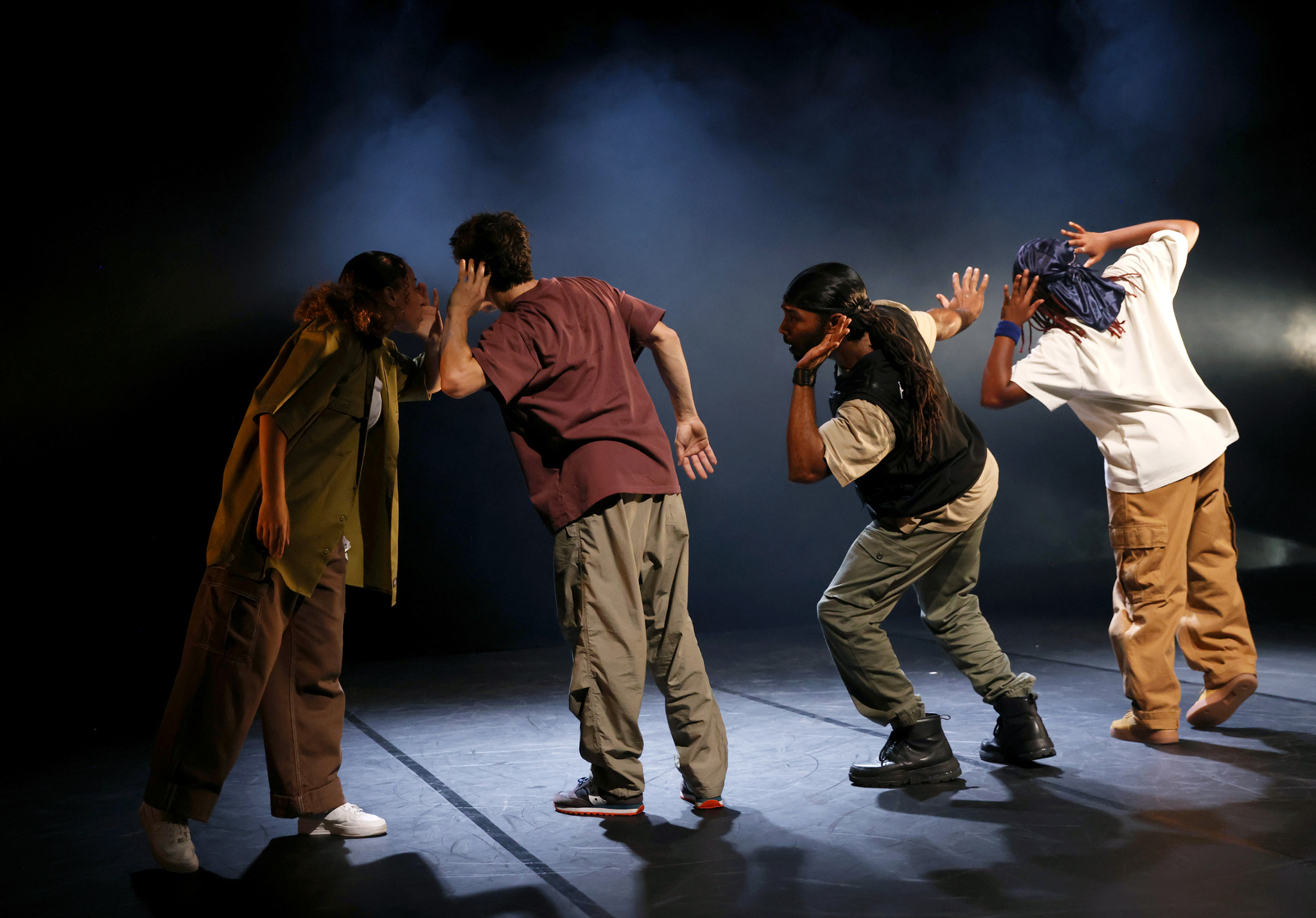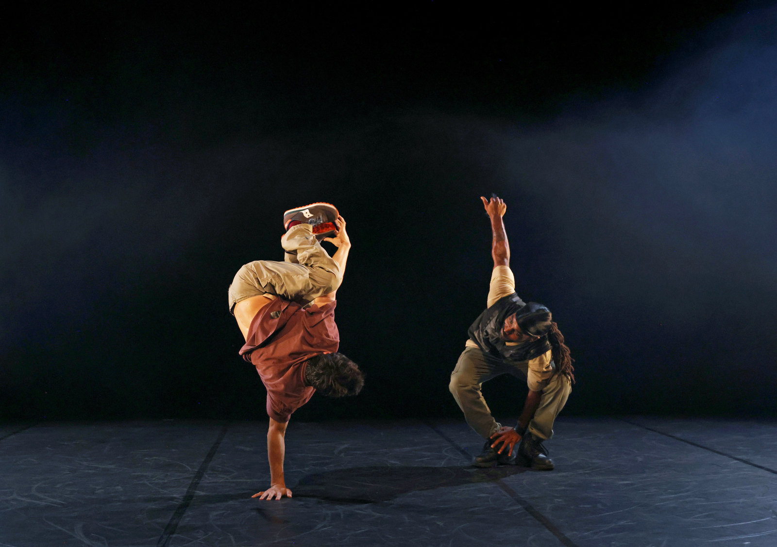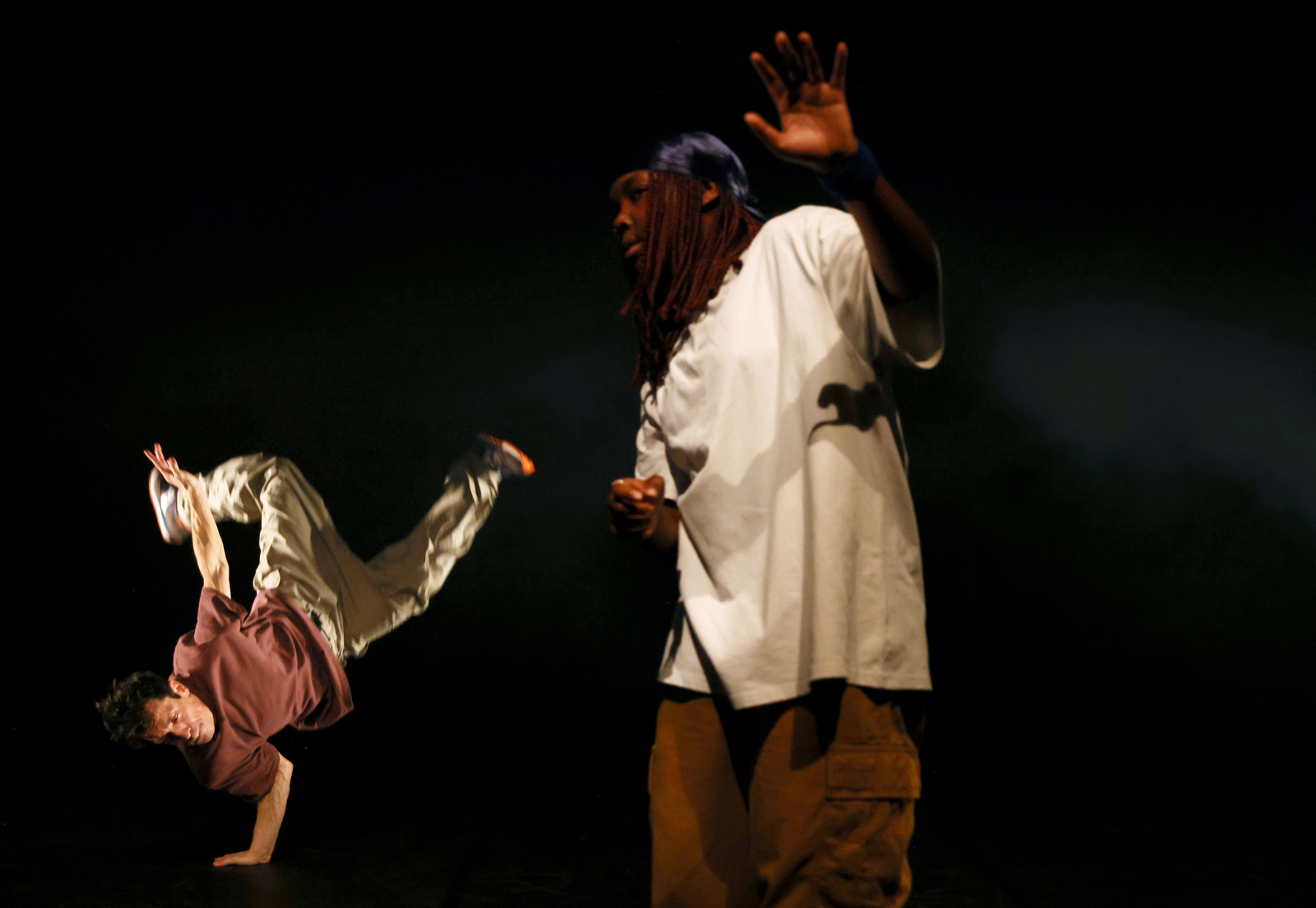 Heracles on his head brings us back to the origins of hip-hop culture. On a U.S. rap playlist that tells the sometimes-brutal reality of the Afro-American youth, from New-York City to South Central, Atlanta, Dallas, Houston, or Philadelphia, four dancers, two B-Boys and two female hip-hop dancers, explore the principles of competition, hierarchy, and meritocracy. From Gil Scott Heron, KRS-One and Public Enemy to gangsta rap and contemporary conscious rap, the soundtrack immerses us into a vision of the system described from where one has to thrive to survive. Using embodied metaphors and symbols, the dancers, alone or as a group, compose a narrative about the strategic games we all play, but whose outcomes we undergo differently depending on the constraints that are imposed on us and on those we accept.