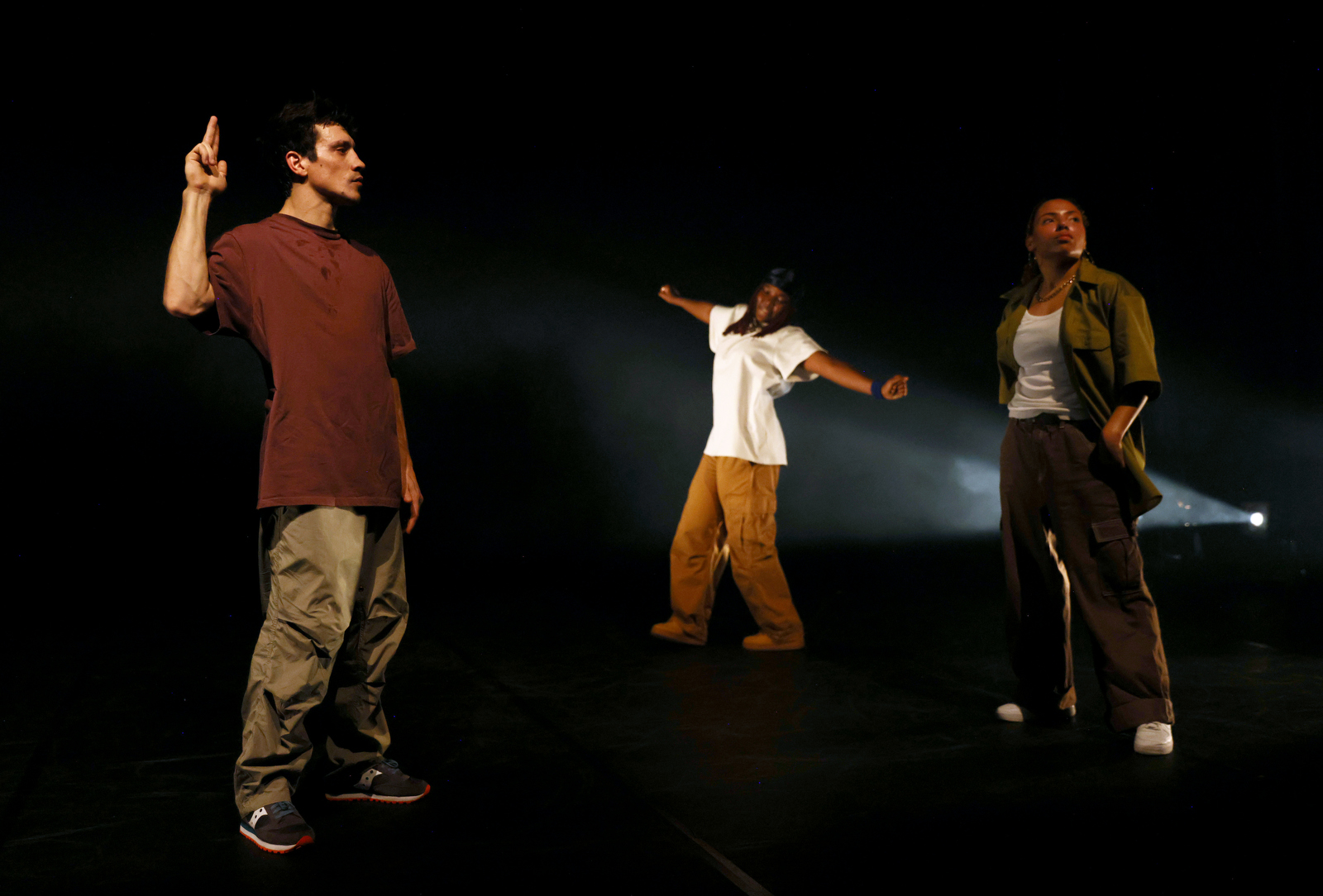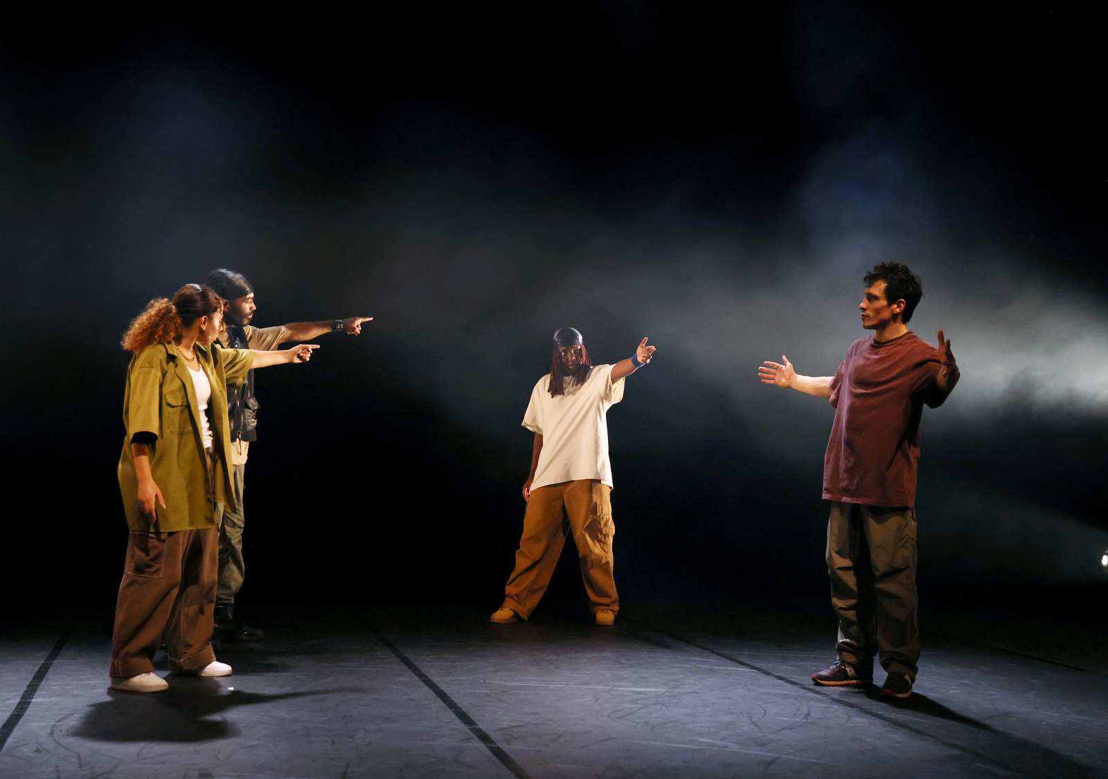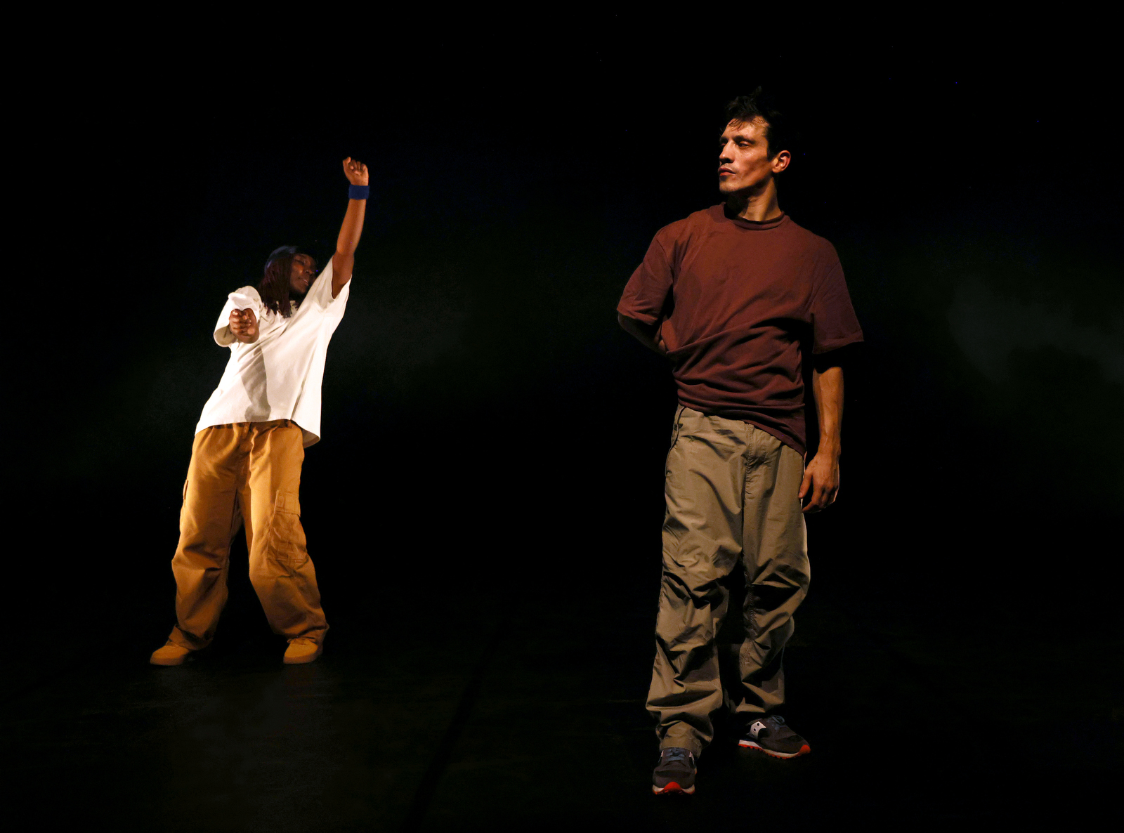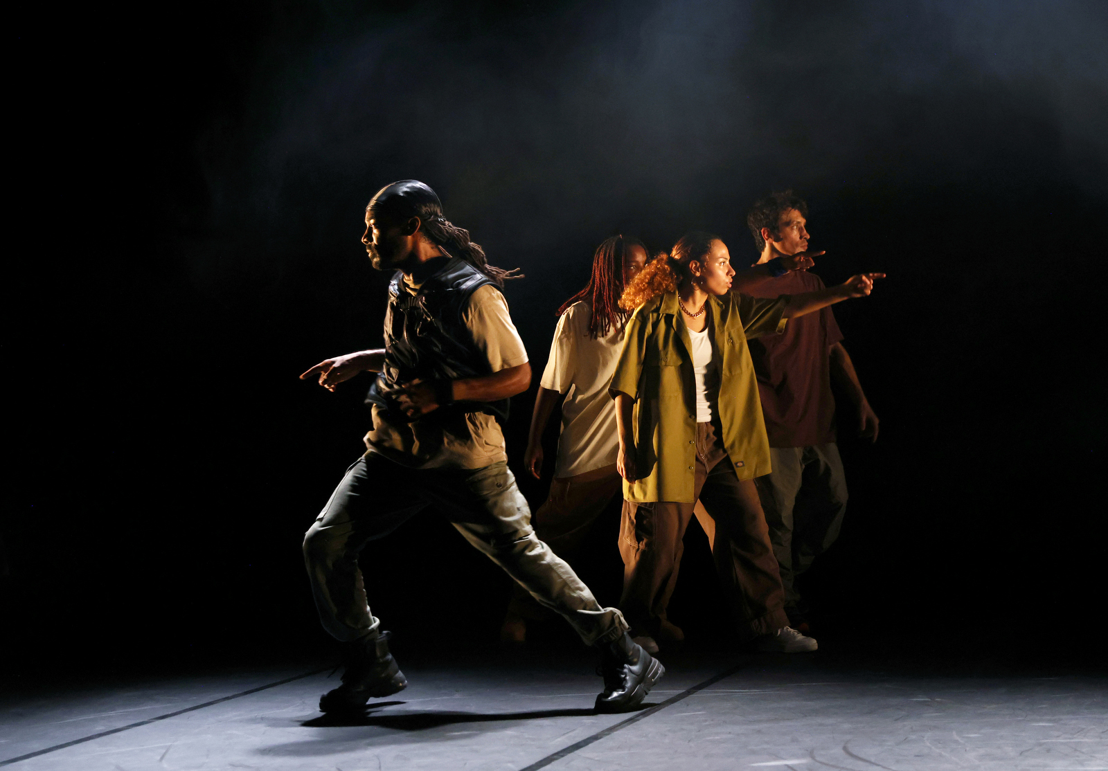 Heracles on his head brings us back to the origins of hip-hop culture. On a U.S. rap playlist that tells the sometimes-brutal reality of the Afro-American youth, from New-York City to South Central, Atlanta, Dallas, Houston, or Philadelphia, four dancers, two B-Boys and two female hip-hop dancers, explore the principles of competition, hierarchy, and meritocracy. From Gil Scott Heron, KRS-One and Public Enemy to gangsta rap and contemporary conscious rap, the soundtrack immerses us into a vision of the system described from where one has to thrive to survive. Using embodied metaphors and symbols, the dancers, alone or as a group, compose a narrative about the strategic games we all play, but whose outcomes we undergo differently depending on the constraints that are imposed on us and on those we accept.