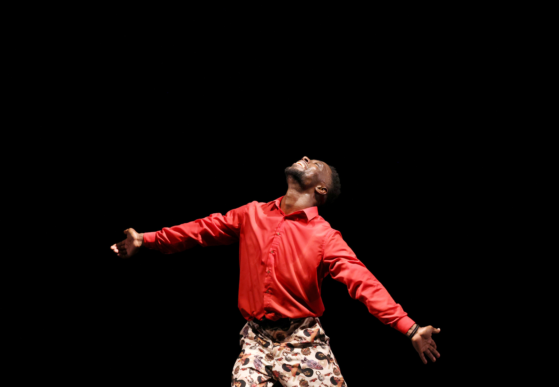 [Superstrat[ explores the relationship between the ancestral roots of dance and music and the inheritance of the Afro-American diaspora. Part initiatory journey part migratory experience, this solo by an urban and traditional African dancer tells the story of the body’s memory. Through dance and music, it takes us across the ages through rhythms and gestures, back to the ancestral language of the body, its capacity for constant reinvention and its universal symbolism. Was a dance or a music ever “invented”? Why do we identify with some influences, but not others? In a cosmopolitan world built on migrations, both voluntary and enforced, how do cultures travel with populations and individuals? How do our roots inhabit our bodies?
